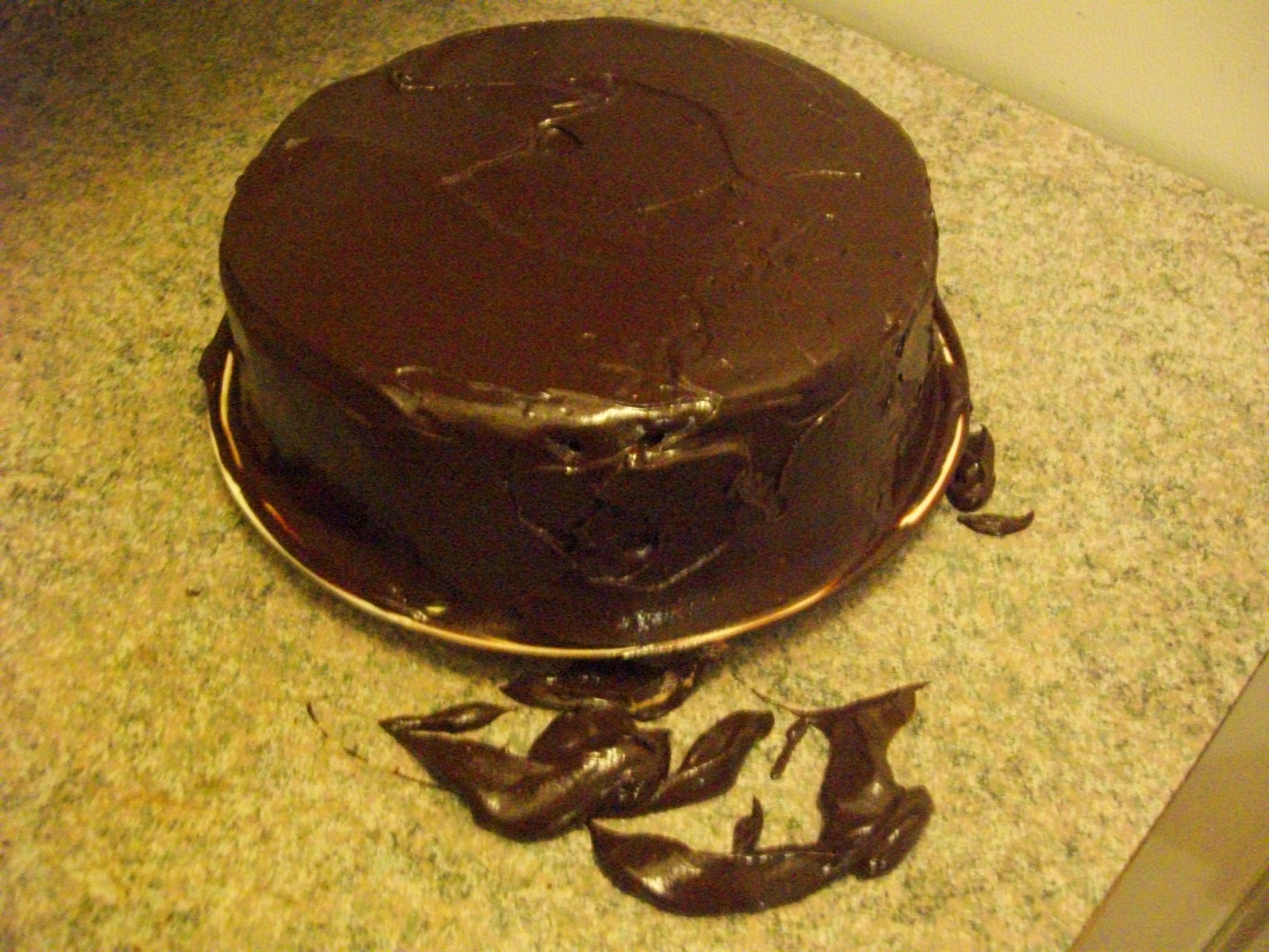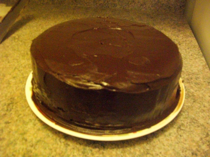 I am happy with my ganache-ing skills and especially pleased that the cake is nice and flat and as straight as I could ask for. I’ll be sure to make another post detailing the demolition of this delicious-looking (and hopefully wonderful tasting) cake.