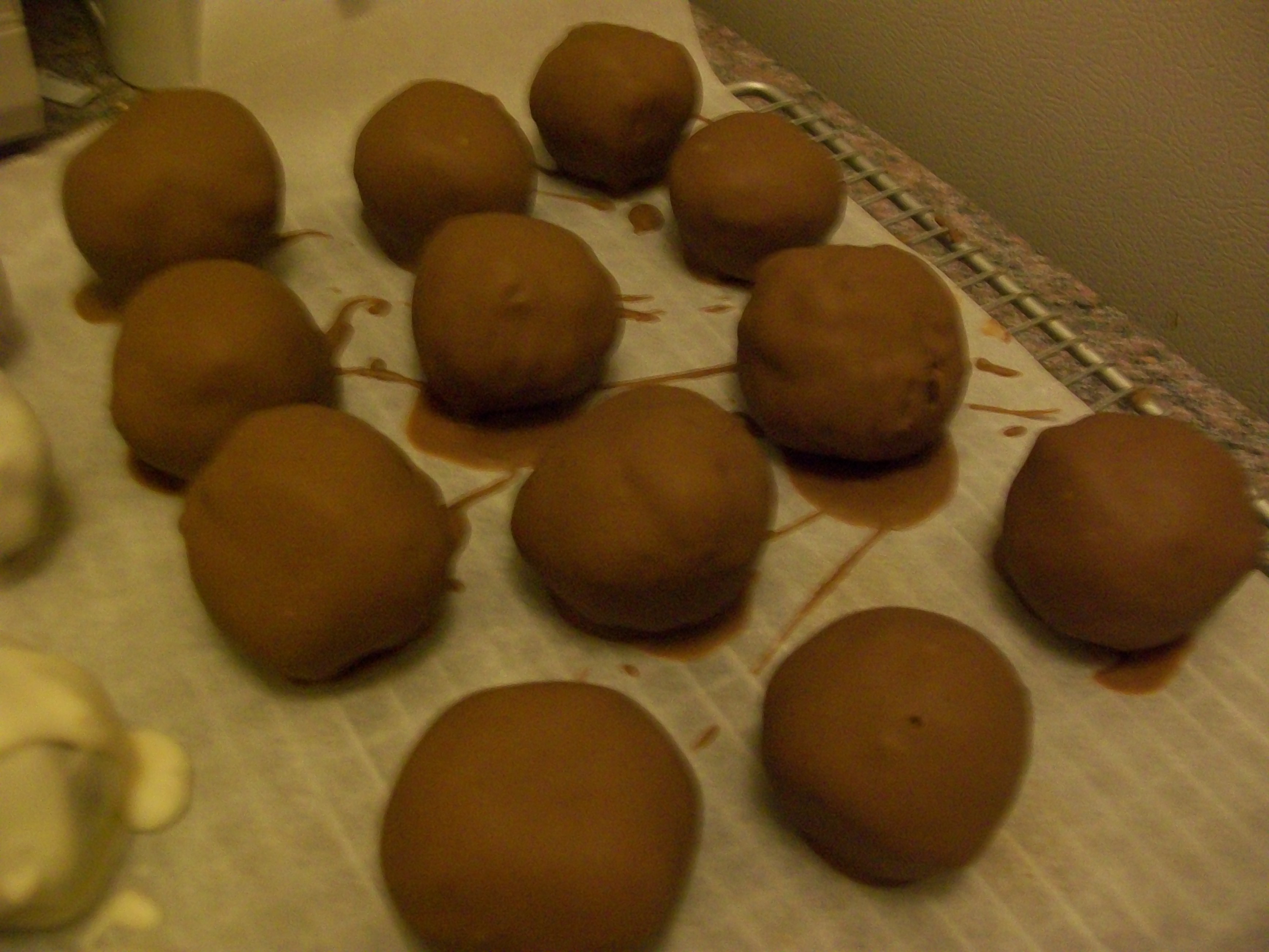 I coated some in melted peanut butter semi-sweet swirl chips.