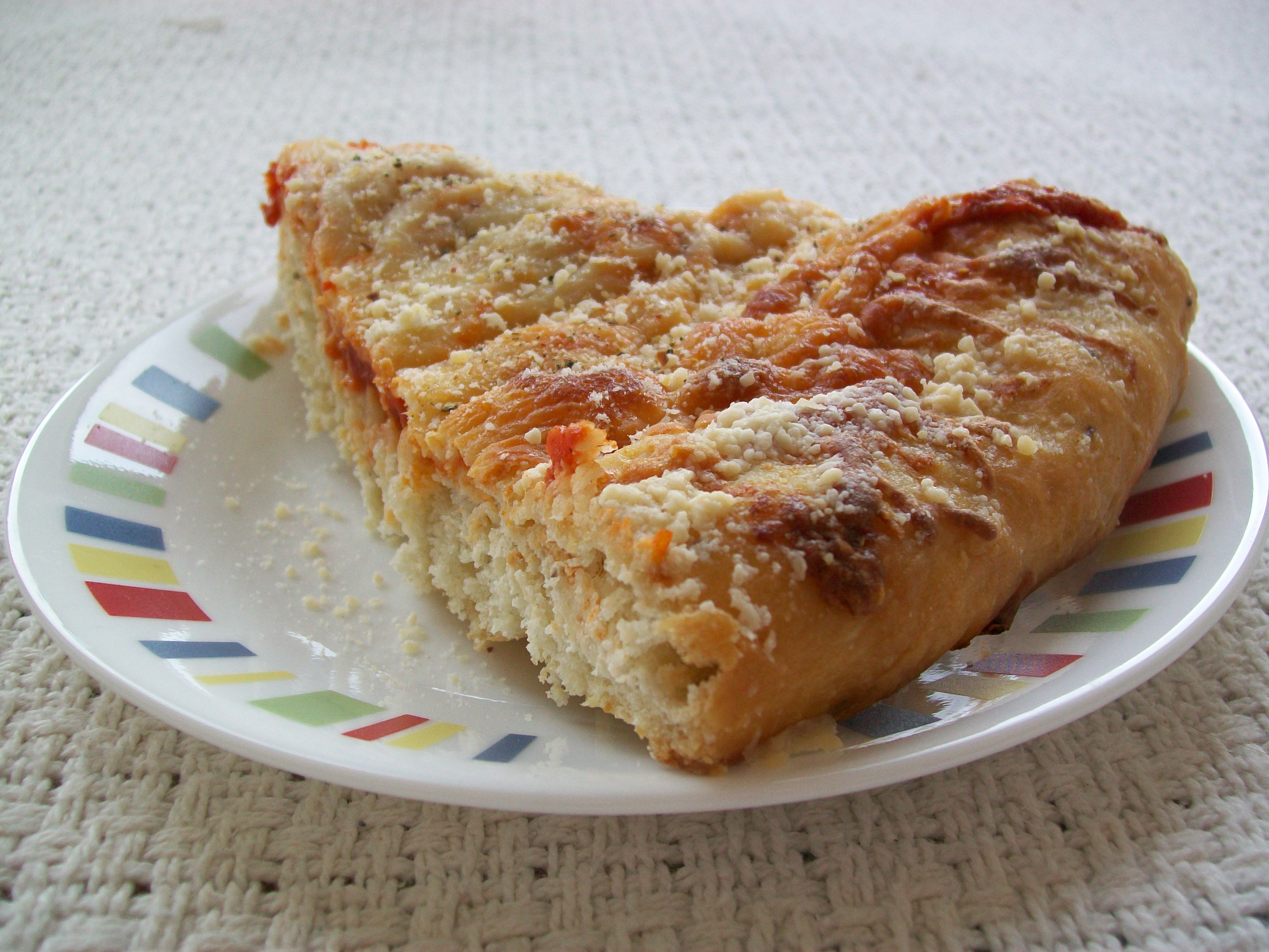 There are no words for how well the smell translated into taste. The crust was everything I expected: fluffy, tender, flavorful, buttery, GARLICKY, and cheesy. The cheese and sauce were a bit lacking in flavor though, so I sprinkled on some more Parmesan and cracked some garlic pepper. Much better. I think this is definitely a crust that works better with some additional salt and punch, so I’ll have to expand my pizza cheese horizons beyond shredded mozzarella. I also probably shouldn’t use my go-to spaghetti sauce on it either, because it needs a sauce with more depth of flavor. Next time there will also definitely be pepperoni and maybe a drizzling of olive oil in the last few minutes in the oven. Looks like I’ll be experimenting soon!