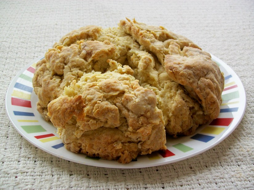 Mine was definitely a more rustic-looking soda bread, because I might have taken the “don’t knead it until it’s smooth” bit a tad too far. Oh well. The interior was super fluffy and moist, so I’ll sacrifice aesthetics for taste for the moment.