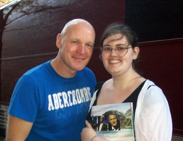 I remember when I went to the Celtic Thunder show at the Tilles Center in Fall 2009–the first stop on my three-show whirlwind. By some miracle, I was second row in the pit, and I managed to scoot over to the center aisle seat. I came fully prepared with small signs to hold up to try to elicit reactions from the lads. They worked. Fantastically. I got winks and eyebrow raises from George (as well as other small reactions from everyone else).