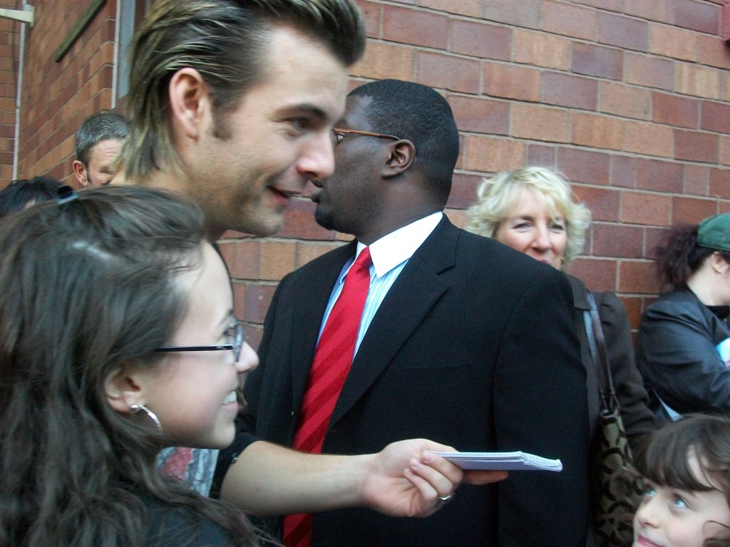 Ryan and George sort of flew by us and didn’t really stop, except for Ryan to sign something for one girl and her little sister, because the lads can’t say no to little kids. We thought George was going to come back, because he said “hold on,” but I think he meant the Scottish meaning, because he NEVER CAME BACK. I hung around with one other woman until 11:30, and NOTHING. I wanted to tell Carrie and Sarah on him so he would get in trouble, haha.